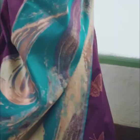 Enhance your ethnic style with this elegant purple digital printed saree that perfectly blends modern artistry with traditional charm. Featuring a graceful abstract floral print and a soft, fluid drape, this saree is ideal for women who love sophisticated fashion.